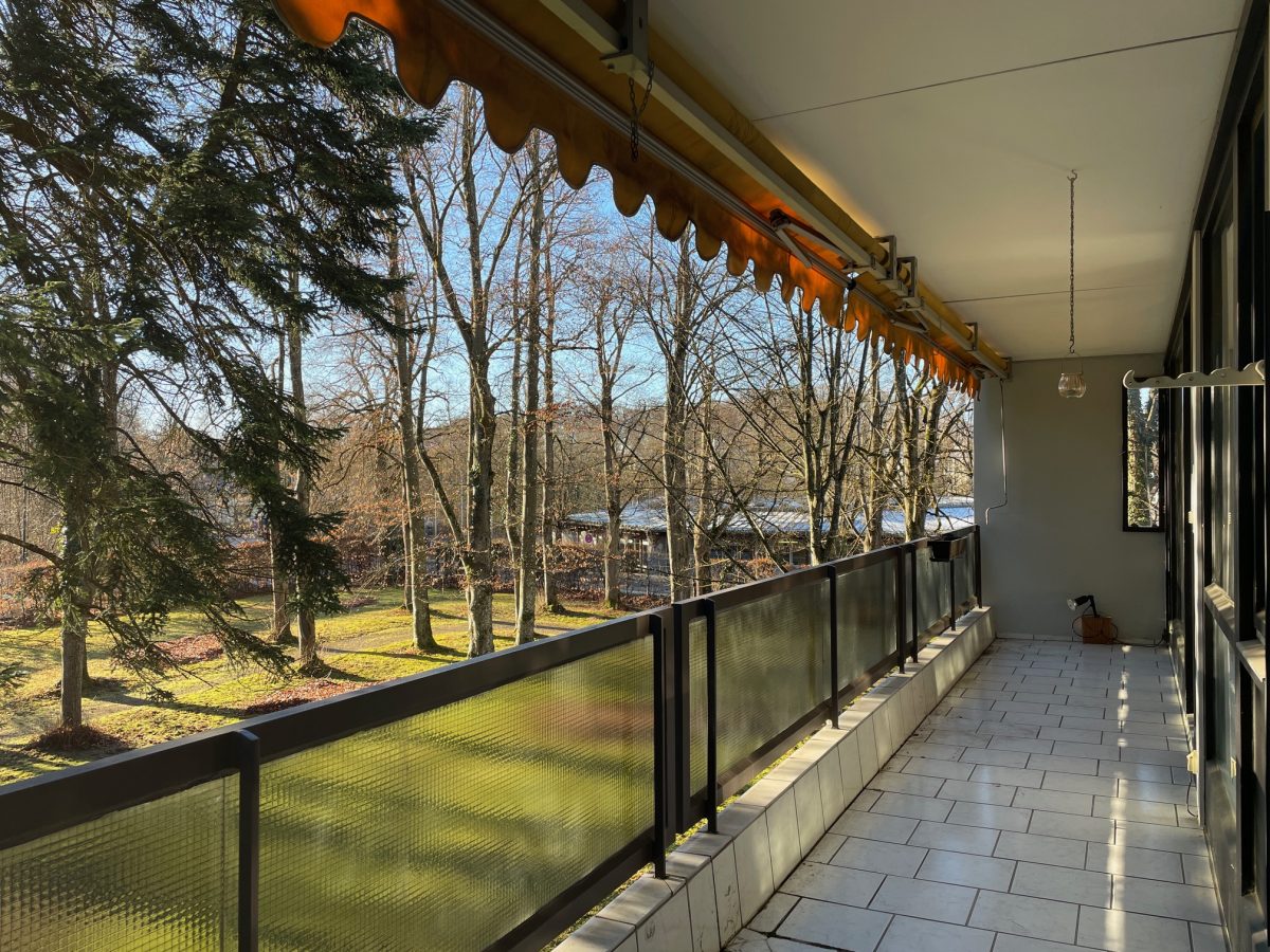 Die von uns angebotene charmante, individuelle und großzügig gestaltete Zwei-Zimmer-Wohnung mit großem Balkon befindet sich im 1. OG eines sehr gepflegten Mehrfamilienhauses (Bj. 1972). Dieses ist Teil einer Park- Wohnanlage mit Wellnessbereich, der unterirdisch über die Tiefgarage oder den Park erreichbar ist. Der attraktiv gestaltete Wellnessbereich mit Schwimmbad und Sauna ermöglicht es Ihnen, sich jederzeit zu erholen und zu entspannen. Die Wohnanlage befindet sich zum einen in einem sehr schönen und weitläufig angelegten Park mit altem Baumbestand sowie zum anderen in unmittelbarer Nähe eines Naturschutzgebietes. In diesem ruhigen Umfeld können Sie entspannen und ausgedehnte Spaziergänge unternehmen. Von der Tiefgarage kommend, gelangen Sie mit dem Lift auf die Ebene der Wohnung. Dort erwartet Sie nach dem Entrée ein lichtdurchfluteter, offen gestalteter Wohnbereich, der zum Verweilen einlädt. Durch die raumhohen Panoramafenster blicken Sie ins Grüne. Über den Flur gelangen Sie ins Schlafzimmer. Der durchgehende Balkon gestattet Zugang sowohl vom Schlafzimmer als auch vom Wohnzimmer. Ein modernes Badezimmer und eine kleine Küche runden das Angebot ab. Zur Wohnung gehört ein geräumiges Kellerabteil.