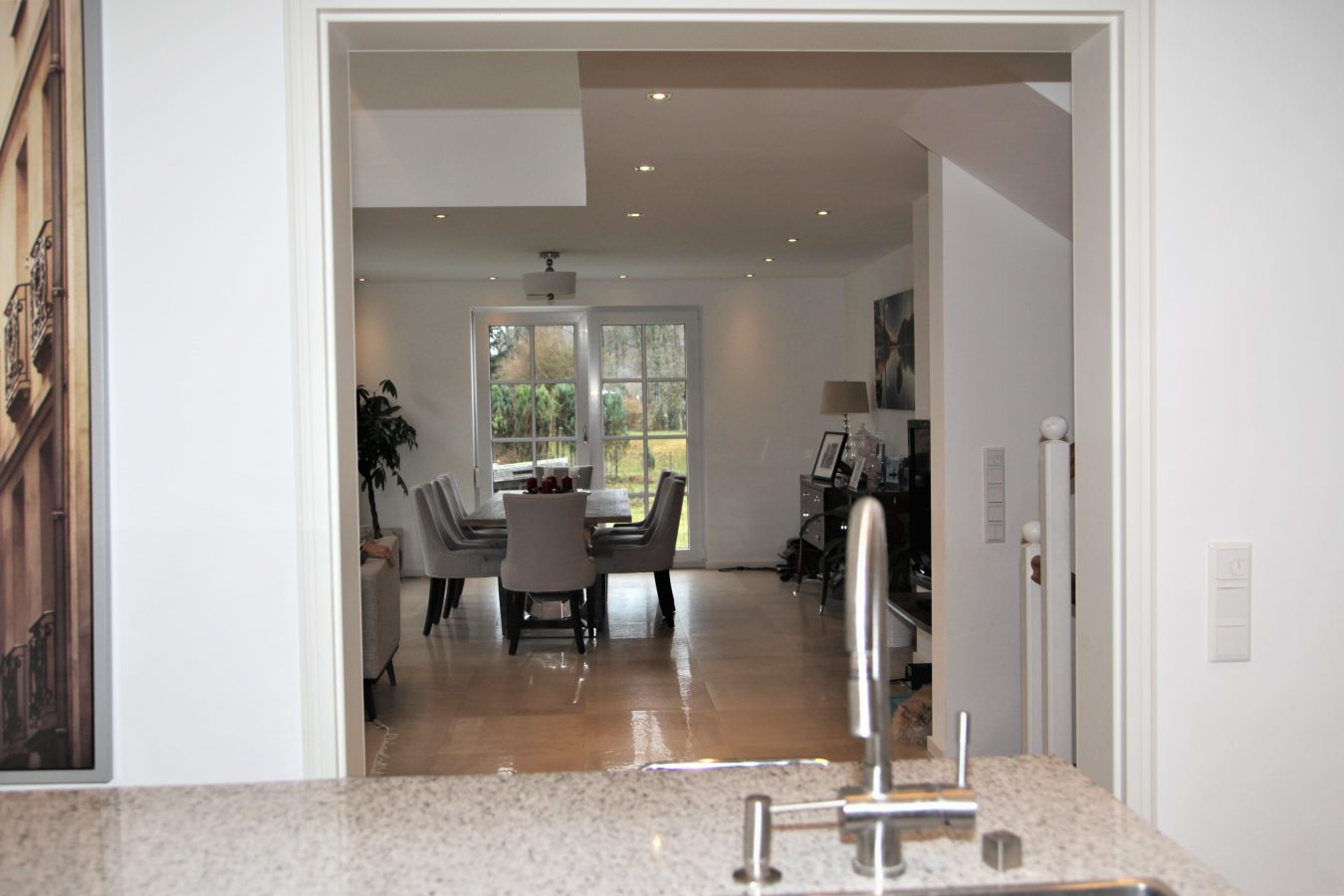 - Große Natursteinfliesen im gesamten Haus
